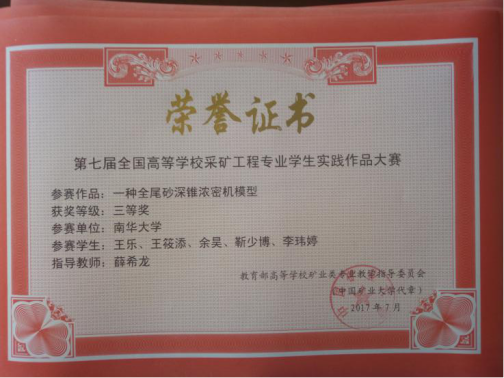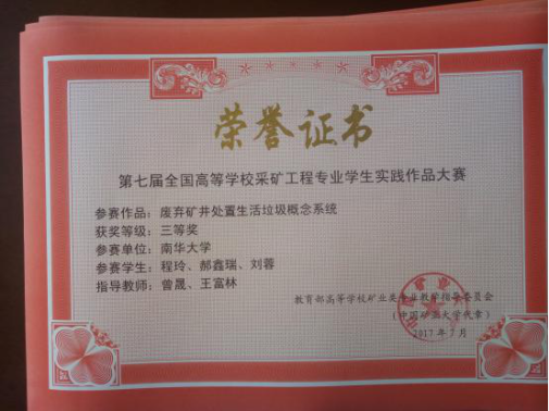 上一条:全国高等公司采矿工程大赛员工获奖证书 下一条:2012——2017年vsport第一志愿录取情况(一)