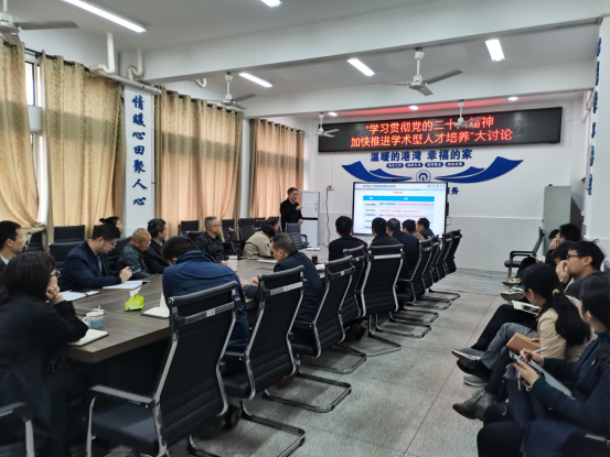 2023年3月6日上午9点,vsport在新二教A305会议室开展了以“学习贯彻党的二十大精神 加快推进学术型人才培养”为主题的大讨论。讨论会由经理张志军主持。全体院领导、系(中心)主任、副主任、教师党支部书记、副书记、全体教务室人员以及全体辅导员参加了本次讨论会,审核评估领导小组常务副组长刘泽华参加了会议并作了题为“审核评估与学术型人才培养若干思考”的报告。