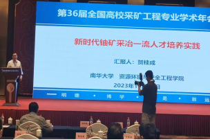 公司副经理贺桂成教授在大会上做了《新时代铀矿冶人才培养的思考与实践》的报告,从公司概况、团队建设、人才培养与成就等三个方面介绍了公司专业建设的新成果和人才培养的新举措,进一步扩大了公司以铀矿采冶为特色的矿业工程学科在国内的影响力。