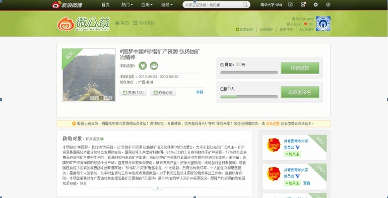 本次微博团队由湖南省vsport胜利因您更精彩核资源工程公司资源勘查专业11级同学组成,他们的积极上进不仅给vsport胜利因您更精彩带来了荣誉,更是扩大了地矿类专业的影响力,为国家地质事业的发展形成良好的氛围。通过此次活动他们也坚定了献身铀矿冶事业的决心,提高社会责任感和使命感。