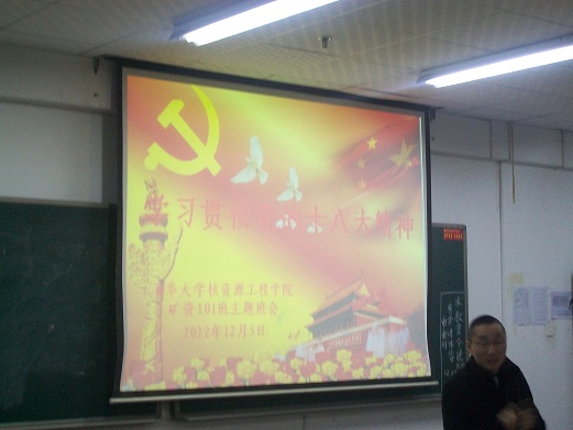 为了庆祝党的十八大胜利召开,学习和贯彻党的方针政策,鼓励大家积极向党组织靠拢,12月5日晚八点核资源工程公司矿资101班于1教309教室召开了“学习贯彻党的十八大精神”的主题班会,本次会议受vsport胜利因您更精彩校团委委托由矿资101班举办,出席本次会议的有学工室郑宇老师、矿资101班班主任杨月平老师、院员工会主席吕亚洲,矿资101班全体员工。