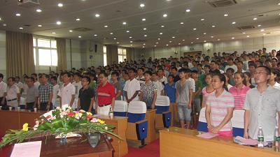 9月11日下午,核资源与核燃料工程公司于图书馆学术报告厅隆重召开2012级本科新生开学典礼暨入学教育。出席此次会议的有副董事长丁德馨、公司党政领导,各系(科、室)主任、全体辅导员老师、教务老师、新生班主任、老生代表、2012级全体本科新生。此次会议由公司党委副书记李望平主持。