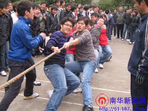 在甲流肆虐之际举办拔河比赛,既有利于带动大家的运动热情,放松心情,锻炼身体,又能加强团队精神,增强大家的班级凝聚力与荣誉感,为创建和谐南华添砖加瓦!