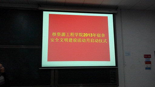 核资源工程公司2013年宿舍安全文明建设活动月启动仪式圆满结束,启动仪式后,大家充分认识到宿舍文明安全、食品安全及学风问题持续改善的重要性和紧迫性。相信在今后的学习生活中,同学们在这些方面会更加注意,实现文明建设,展现核资风采。