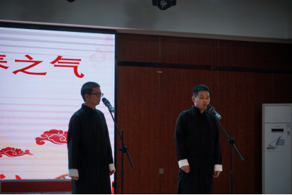 在颁奖结束后,晚会继续进行。面对社会思潮的交流交融交锋,身为老员工的我们难免会有困惑,会有迷茫,但有一条主线始终不变,就是对党和国家的赤诚热爱。相声《谁的大学不迷茫》为同学们带来了新的思考,帮助同学们找到目标。