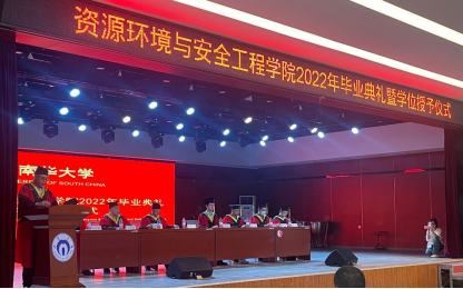 在热烈的掌声和欢呼声中,经理张志军老师在毕业典礼上深情致辞。张志军老师首先代表公司,向圆满完成学业,即将踏上新征程的2022届全体毕业生表达了真诚的祝贺,向辛勤付出的每一位老师表答衷心的感谢。经理表示,南华创校之初心,是为“国计民生”,是为发展核武器,发展国防事业和核工业,其代表就是本公司的铀矿采冶,南华的“核特色”。就在资环安,公司虽几经分合,但如今已成为公司工科最大公司,拥有围绕铀矿采冶最齐全的学科、专业和学位点,公司始终坚持核工业“四个一切”精神,以强核报国为己任,不忘初心,牢记使命,无论风云变换、行业起伏,一直坚守着为国防核工业培养铀矿采冶人才的唯一阵地。经过求学阶段,大家学会了面向世界、面向未来、面向未知的技能和智能,提升了感悟新时代、紧跟新时代、引领新时代的素质和能力;通过学习,使自己成为了新知识、新观念和新思维的能够担当民族复兴大任的时代新人。最后张志军老师代表公司赠送同学们一份礼物,分别是感恩、向学、诚信、向善和乐观之心,勉励毕业生们在逆境中保持坚强乐观,永不言弃;在顺境中,保持谦虚谨慎、戒骄戒躁。