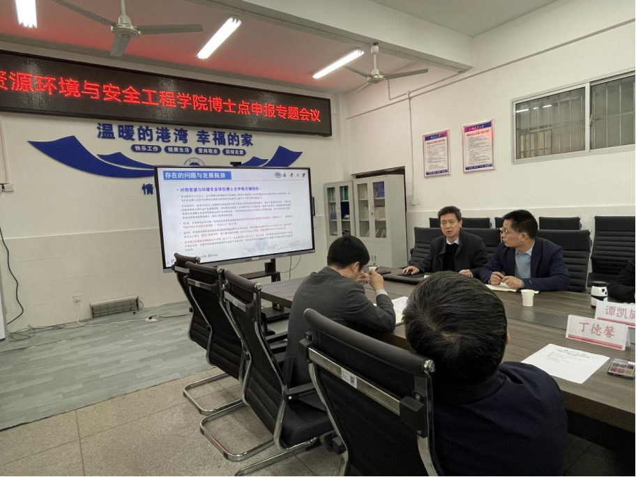 会议首先由戴剑勇进行博士点申报专题汇报。他就目前资源与环境博士点申报材料准备情况进行了介绍,强调了公司申报博士点面临的机遇与挑战,指出了博士点申报的现状与问题,同时给出了自己的思考与对策。