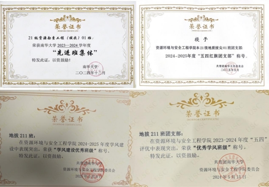 班级集体荣誉感很强,他们曾荣获公司“五四红旗团支部”“学风建设优秀班级”“优秀班集体”“优秀团支部”等多项集体荣誉。在地拔班,集体荣誉从不是个人的事。辅导员赵玥老师和班主任段先哲老师会及时提醒申报并辅助材料准备;“一团一品”团支部比拼中,团支书吴启云积极准备材料,侧重从本班科研优势入手。肖天赐、李展鹏、张国秀等八位同学为此特意制作了PPT,班长吴丕金说“正是因为每一位同学都愿意积极递交材料,才有了这么多集体荣誉。”