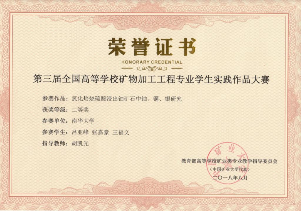 第三届全国高校矿物加工工程专业员工实践作品二等奖