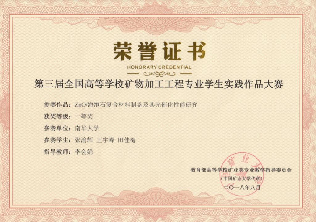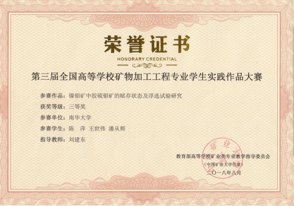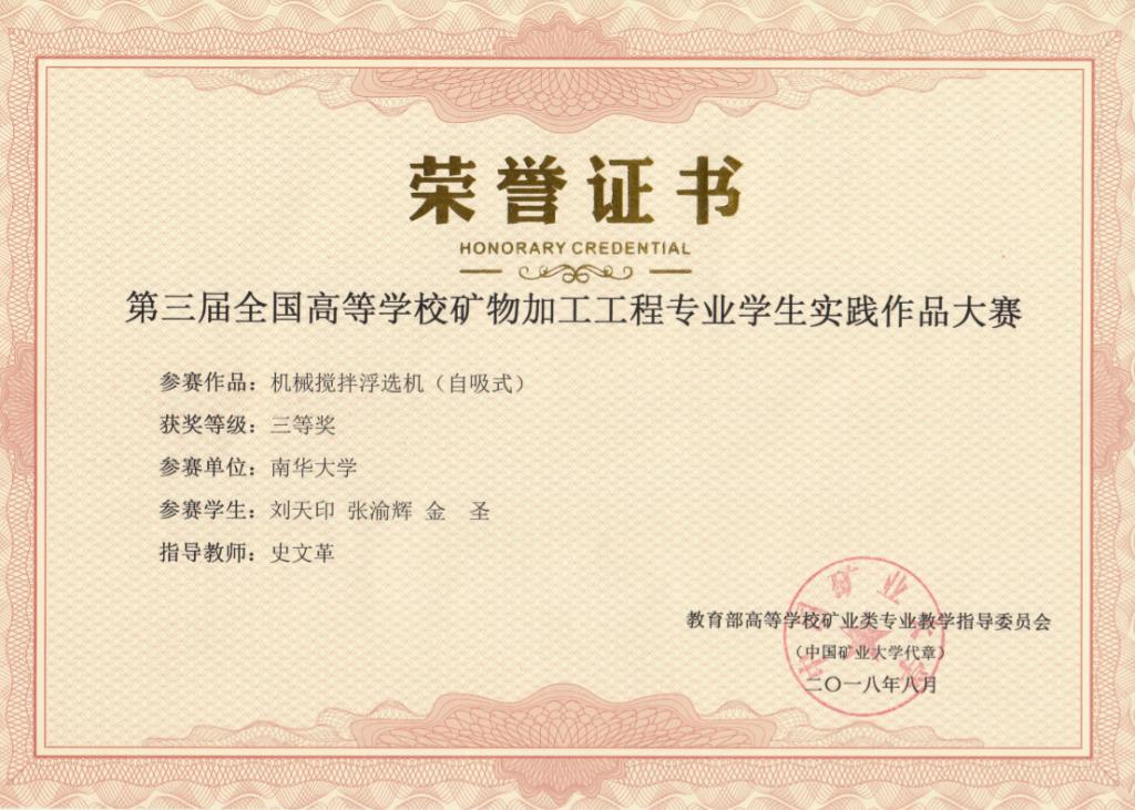 第三届全国高校矿物加工工程专业员工实践作品一等奖