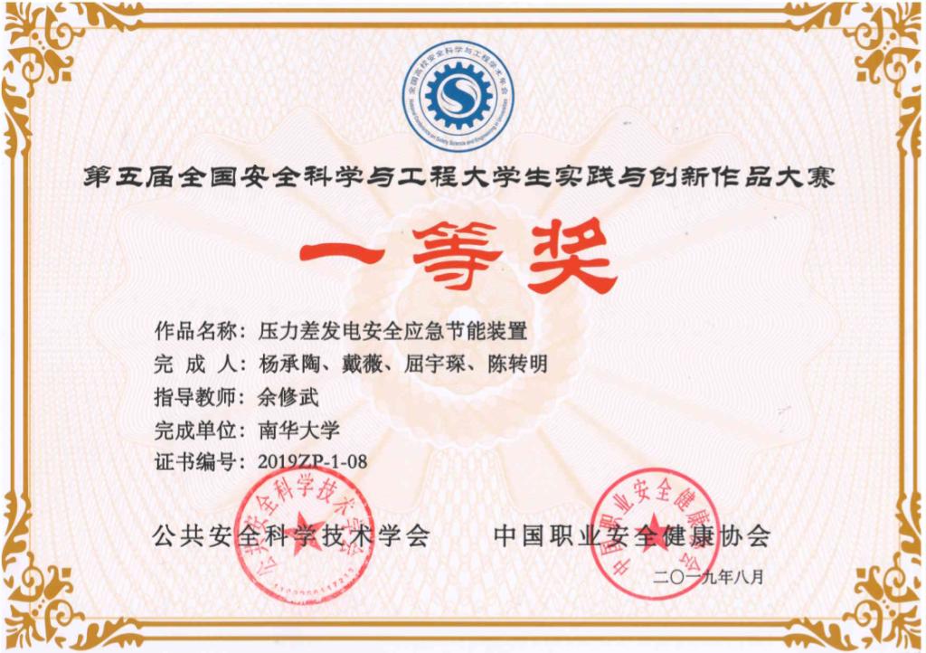 第五届全国高校安全科学与工程老员工实践作品一等奖