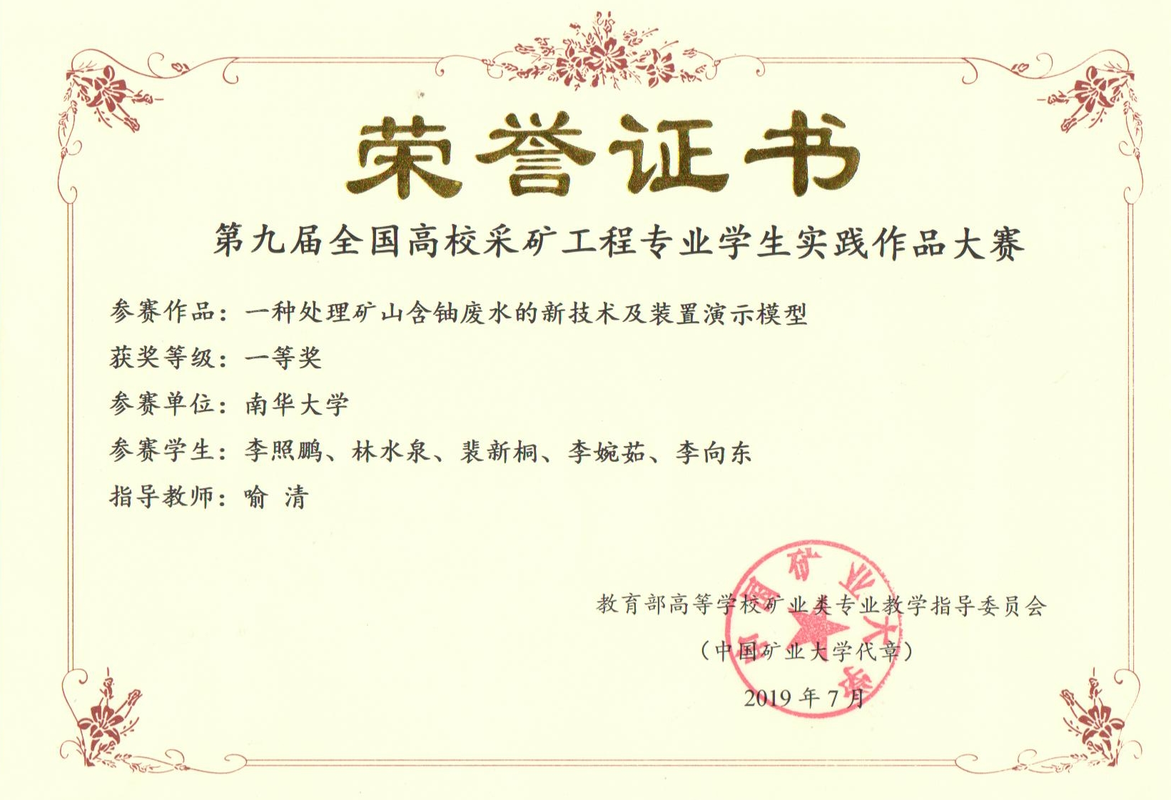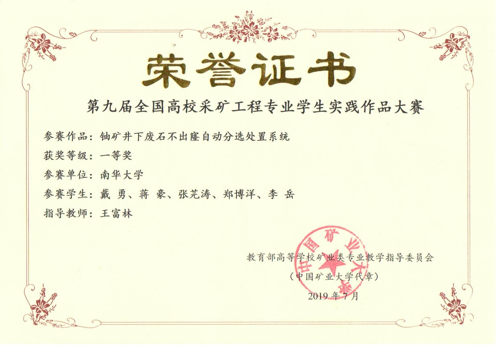 第九届全国高校采矿工程专业员工实践作品一等奖