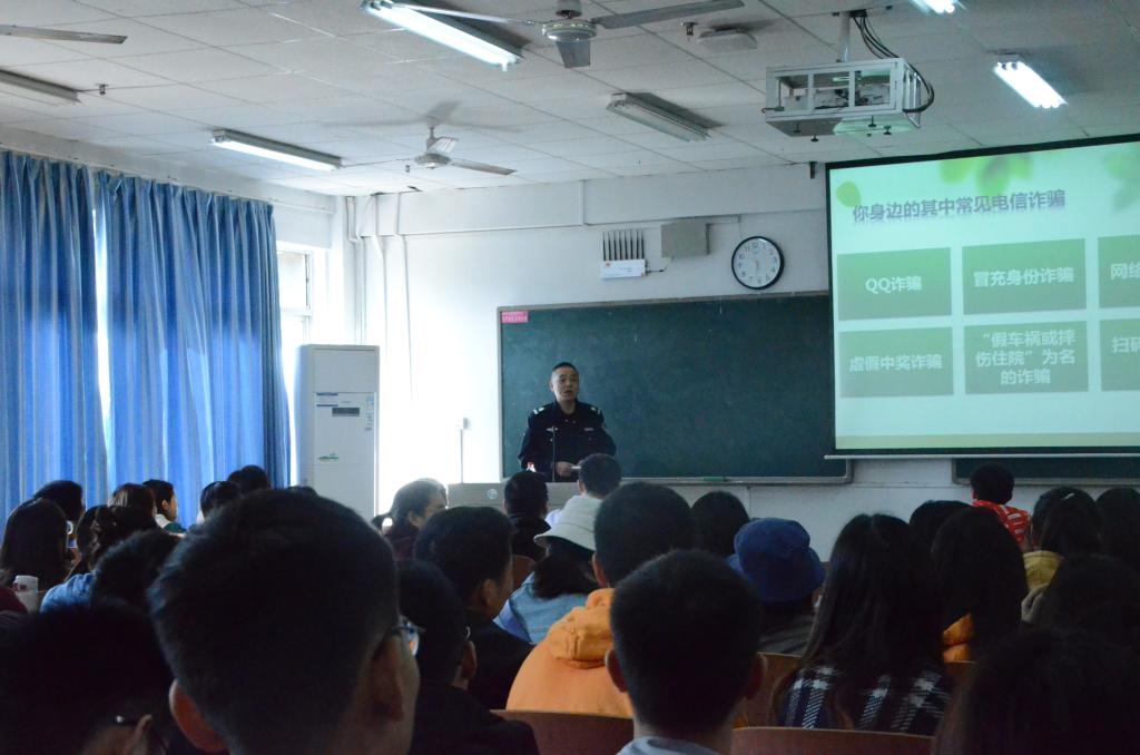 首先,李照以最近校园出现的几起研究生电信诈骗事件切入本次讲座主题,希望大家通过本次讲座加强防范意识,保护好自身生命财产安全。 随后,盛情邀请本次讲座主讲人宋建业老师上台为大家普及防范电信诈骗知识。宋建业立足校园,以切身所见所闻举例子,从不良校园贷、淘宝刷单到各种老员工电信诈骗案件,生动有力地剖析了电信诈骗的本质,将防范观念深入人心。同时,他提醒大家保护好自身安全,校园里遇见可疑的人或事可拨打保卫处电话。