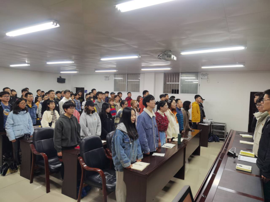 大会第一项全体起立,奏唱国歌。大会第二项,由员工会主席戴浩橦同学宣布本次会议正式开始。大会第三项, 院主席团成员李怡龙同学对学联精神进行了阐释,并进一步宣讲了全国学联二十七大精神落实及工作安排,宣讲内容从实际出发,提及每个班以班长为首的各个班委成员要具体落实职责,分工合作,学会内部协调解决好问题、完善自身建设以及定期开展班会活动,进一步落实“价值引领,服务同学”的精神。此外,李怡龙同学还明确公司团学会主席团成员的义务和职责,强调主席团并不是高高在上的,而是全心全意为全体同学服务、解决具体事情的。
