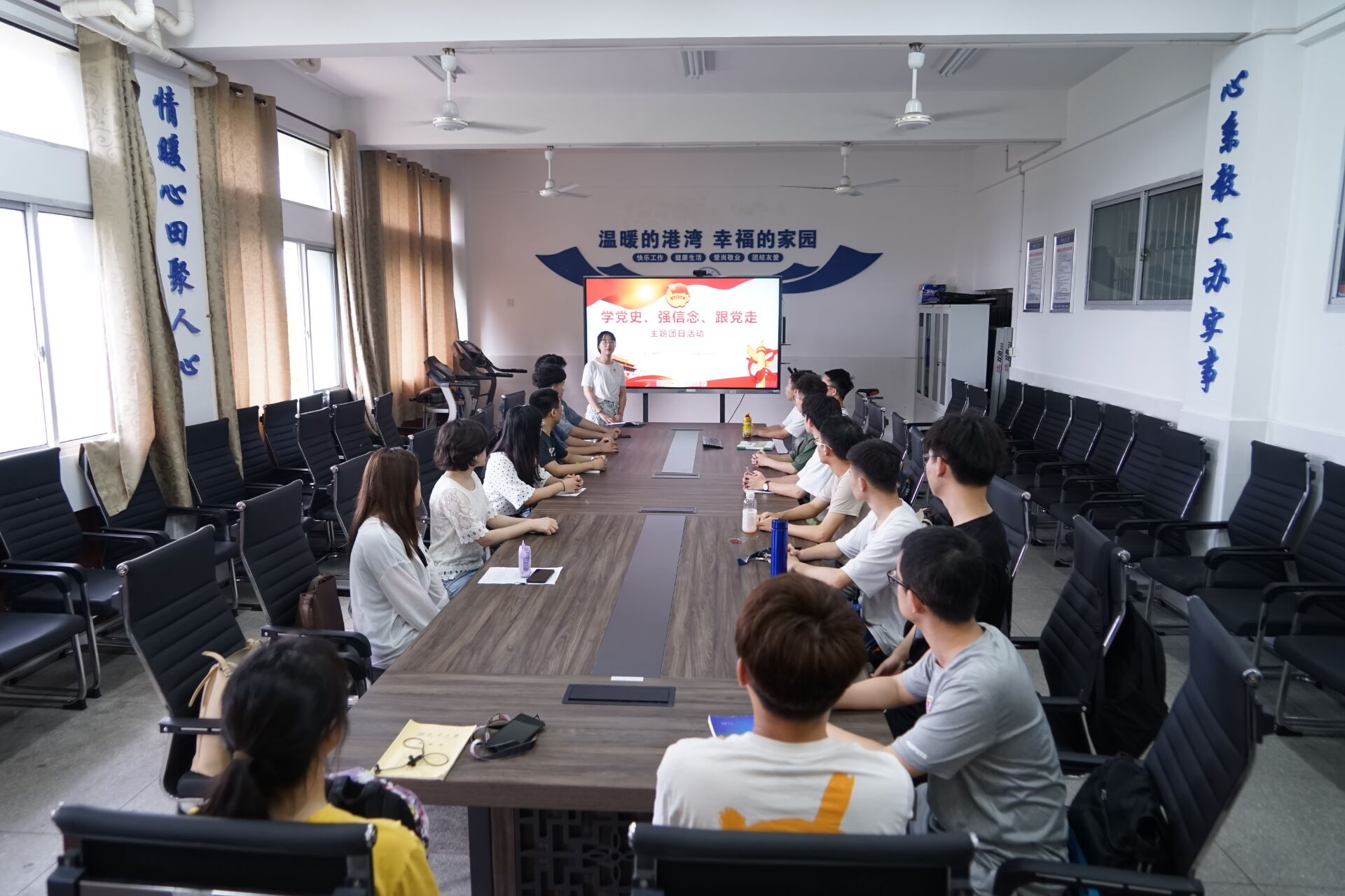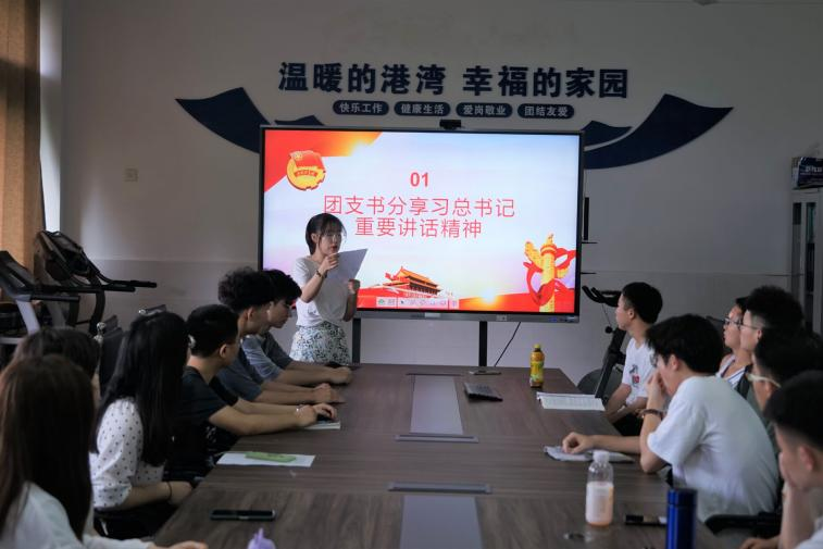 会议第一项,由团支书魏翠悦分享习近平总书记重要讲话精神,今年适逢百年华诞,在全党范围内开展党史学习教育,是党中央立足党的百年历史新起点。全党同志要做到学史明理、学史增信、学史崇德、学史力行,学党史、悟思想、办实事、开新局,以昂扬姿态奋力开启全面建设社会主义现代化国家新征程,以优异成绩迎接建党一百周年。