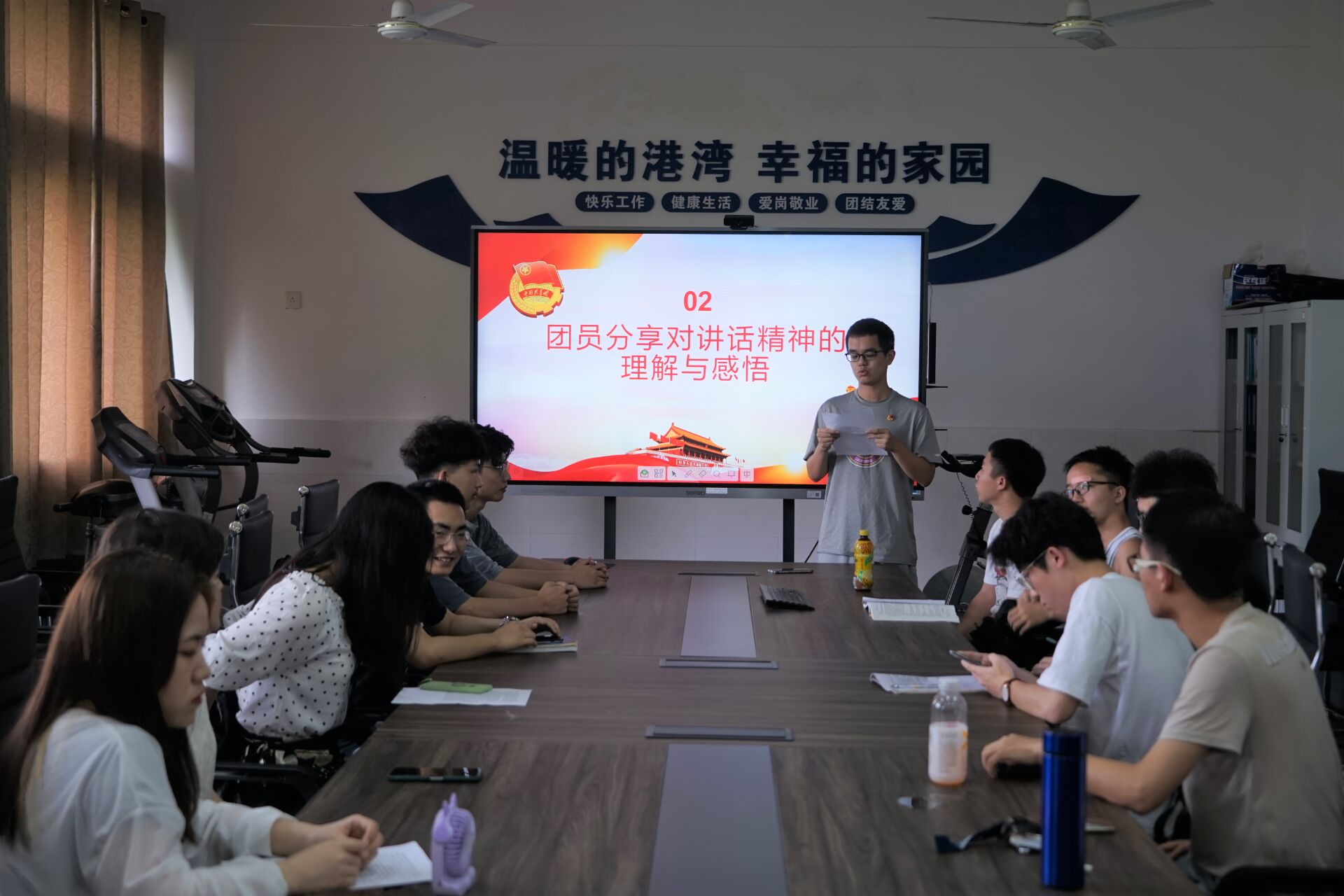 接下来,由团员分享对讲话精神的理解与感悟,周宁、周琼、蔡家浩、王建敏四位同学结合亲身体会,深切表达了对建党一百周年的崇高敬意和对习近平总书记讲话精神的独到见解与体悟。
