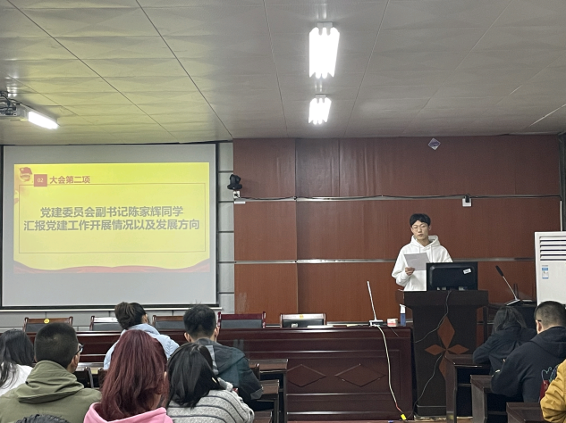 大会第一项,党建委员会副书记陈家辉从两个方面汇报了目前党建各部门工作的开展情况。今年10月,部门招新与面试已圆满完成,下一步将有序开展秋季入党积极分子的培训班活动、完成党员发展对象转预备、举办各员工党支部间的篮球友谊赛、进行新一批党员寝室贴条工作等。