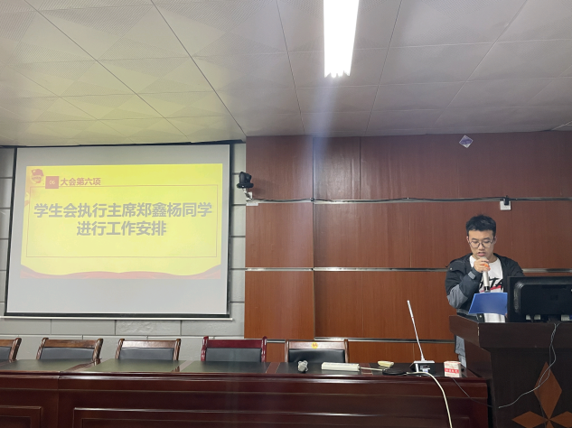 大会第二项,团委及员工会各部门部长就部门工作开展情况总结上一学年所在部门存在的问题以及相应改进措施,并对下一步的发展方向进行汇报总结。此外,各部门部长表示在日后的工作中会着力于部门运行效率问题,积极培养有思想、有能力的干事。学社联主席唐鉴霖表示本学年学社联内部进行了较大的组织变动,主要体现为缩减职能部门,成立综合办公室。办公室内设三个小组,有效提高了社联工作效率。他还进一步指出,进行部门活动不应影响学习,干部们要成为同学们的榜样,起好形象示范作用,要敢作为、敢负责、敢争先。员工会执行主席郑鑫杨对今后工作从明确自身部门职责、服务同学、提升干部形象、增强自身能力四个方面进行了安排,鼓励各位同学应当工作学习两不误,在日常生活中起到带头模范作用。