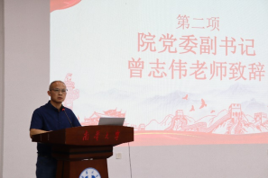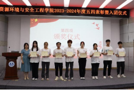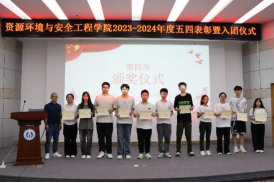 学工室主任陈彦武老师宣读《关于表彰2023-2024年度五四团内先进集体和优秀个人的决定》;学工室辅导员为获奖先进团体及优秀个人颁奖;校“十佳共青团干部”获得者、优秀团员代表周萧萧同学进行发言。