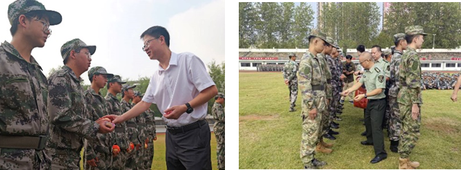 活动伊始,张志军经理向教官了解军训进程和基本情况。军训的意义在于增强同学们的集体意识、希望全体新生能继续保持拼搏进取的精神和吃苦耐劳的韧性,以更加饱满的热情投入军训中,以优良的作风,超越自我,实现蜕变。并祝福同学们军训休息时记得给家人打个电话,送个祝福,报个平安。