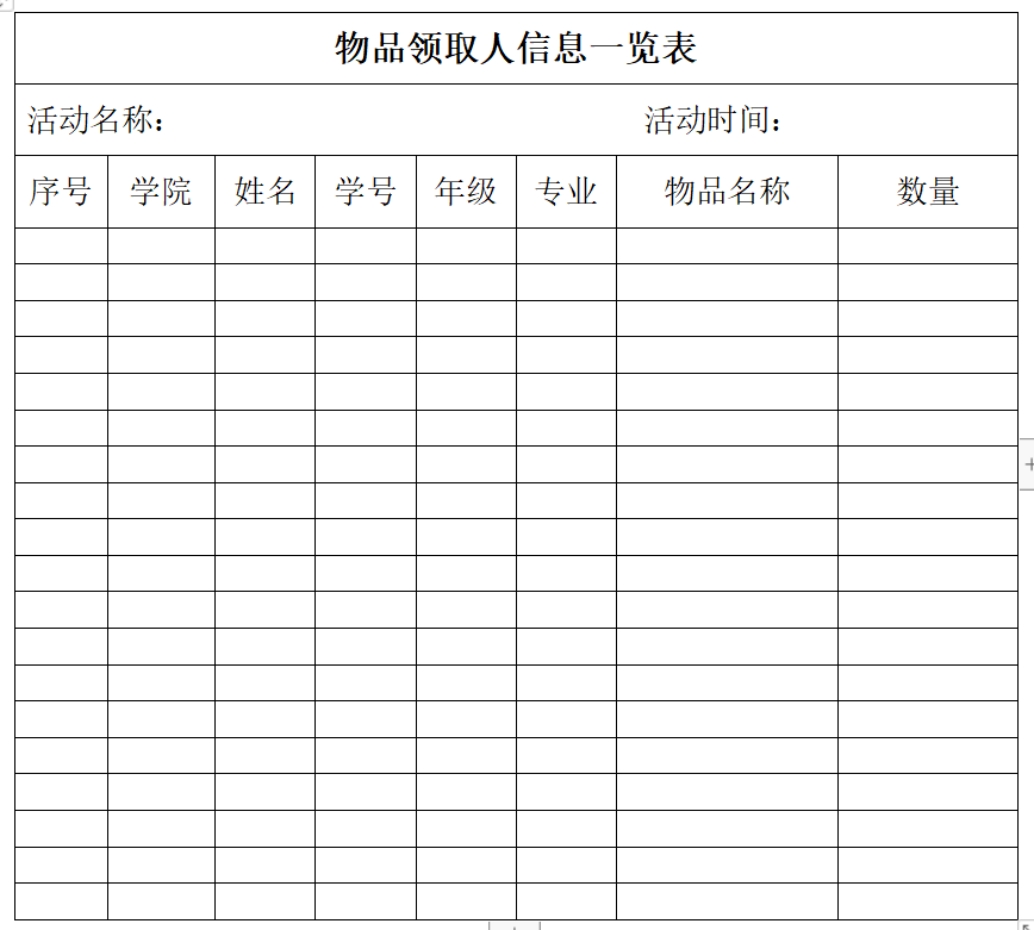 (四) 其他:1.抬头、税号正确的发票;2.支付记录。如为网购,支付记录应该带有物品详情页。如为线下购买,除提供支付记录外,还需提供盖有商家公章的物品清单;4.衣物租赁、器乐租赁等特殊情况下,视情况提供有商家公章的租赁协议;5.如发放奖品、衣服等,需要提供奖品领取人一览表,包括领取人姓名、学号、年级、专业、领取物品名称及数量等信息;7.物品清单,与支付记录、物品照片等一一对应。