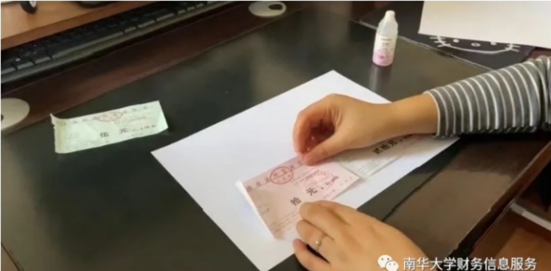 大幅面的票据,在左上角涂上胶水,从A4纸的右边开始粘贴,然后每一张票据向左错开粘贴在A4纸上,每排最多粘贴5张票据,每张A4纸上最多粘贴两排。