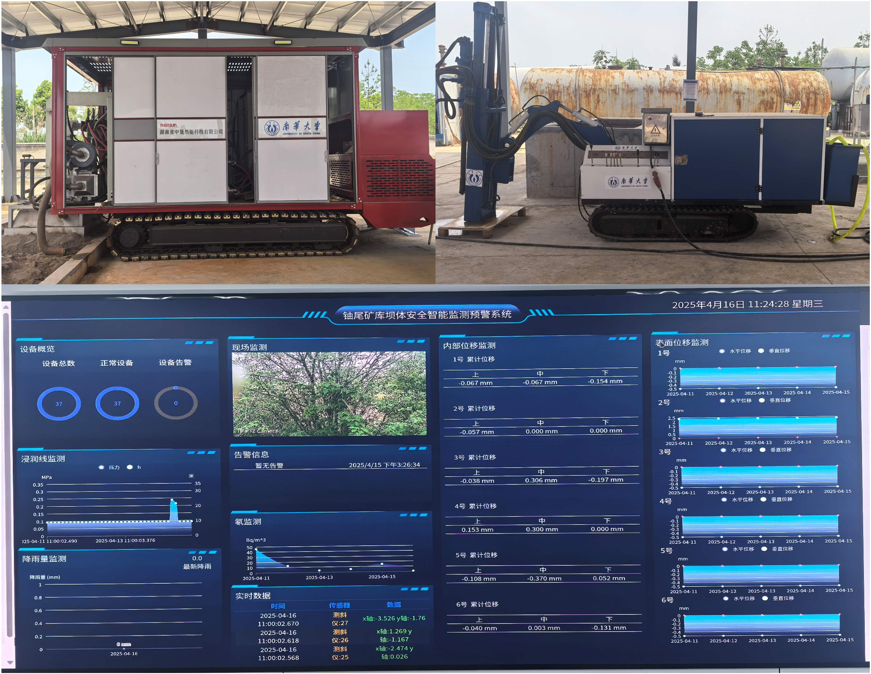 该项目2022年1月获批立项,由vsport胜利因您更精彩牵头实施,中南大学、中核二七二铀业有限责任公司共同参与承担。历时3年技术攻关,张志军教授领衔的科研团队完成了微波滩面固化机、微生物注浆加固一体机和智能监测预警系统的研发工作,形成了“两套治理装备,一套预警系统”的铀尾矿库退役治理新方案。通过实地考察和项目负责人汇报,项目实施成效得到了专家组的一致高度认可。
